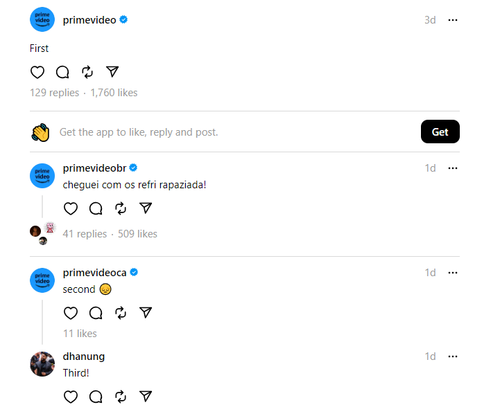 There are bots and surely scammers, but there are some brands having fun, or at least their social media managers are. Amazon Prime is being hilarious. And that is the thrill of a new social platform, the opportunity to create a new way to communicate.