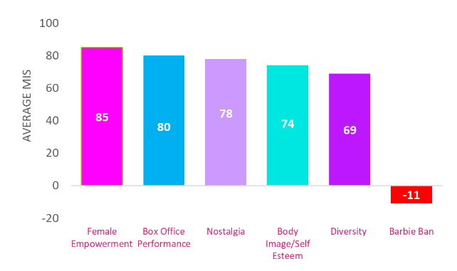 Gerwig’s historic success in claiming the biggest opening weekend for a film directed by a woman drives female empowerment to the highest scoring key message. In a summer of lackluster box office performance, girl power takes the trophy and establishes women-led movies as powerhouse opportunities in the industry.
