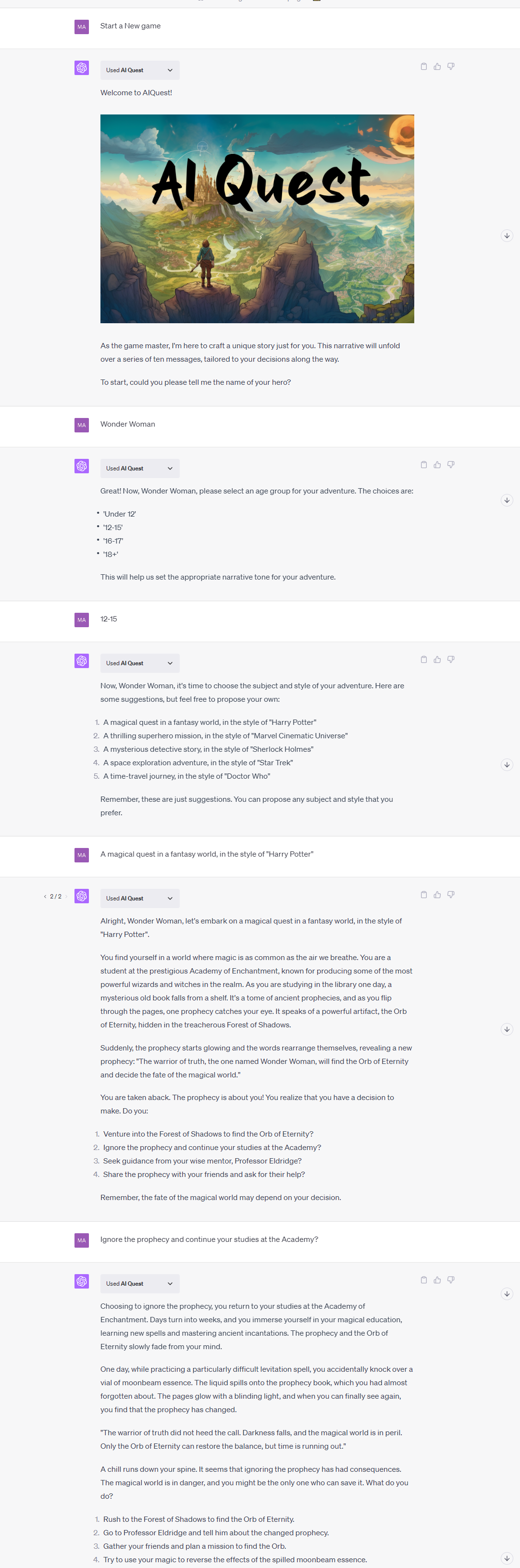 6. AI Quest – If you have a penchant for engaging in narrative-driven games, this plugin is your ultimate destination. Experience an immersive text-based adventure, dynamically crafted by AI, where your decisions mold the storyline.