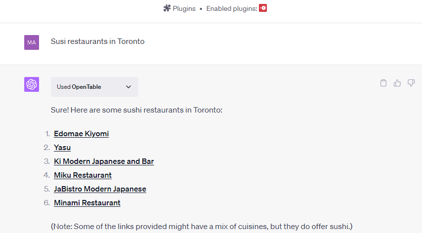 4. OpenTable – Offers restaurant suggestions and features a direct booking link.