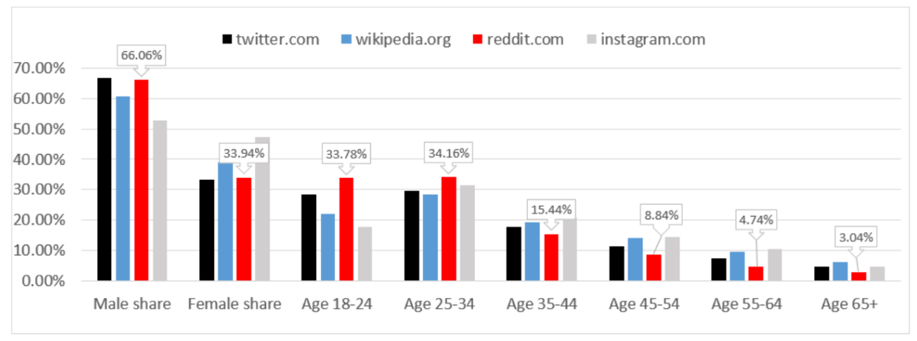 Fig. 1.1, Reddit’s Demographic Composition Trends Young and Male