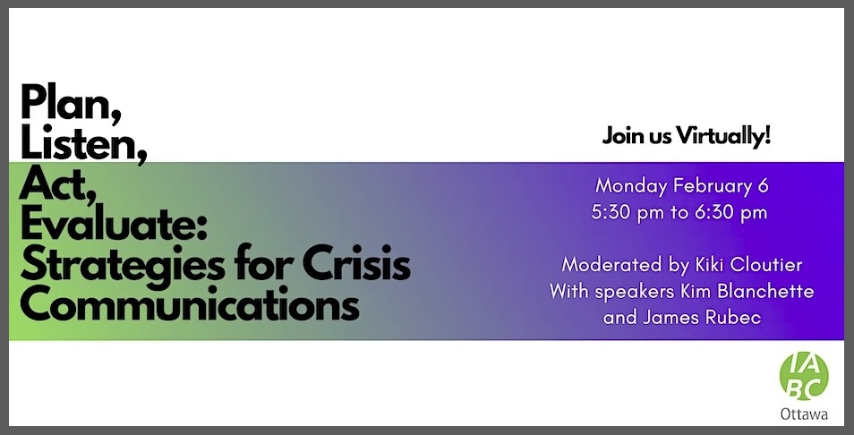 Join Fullintel on Monday Feb. 6, for a webinar (and in person event for those in Ottawa, Ontario Canada) for IABC’s event Plan, Listen, Act, Evaluate: Strategies for Crisis Communications.